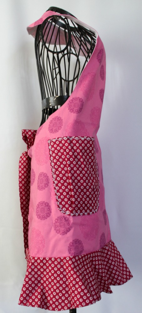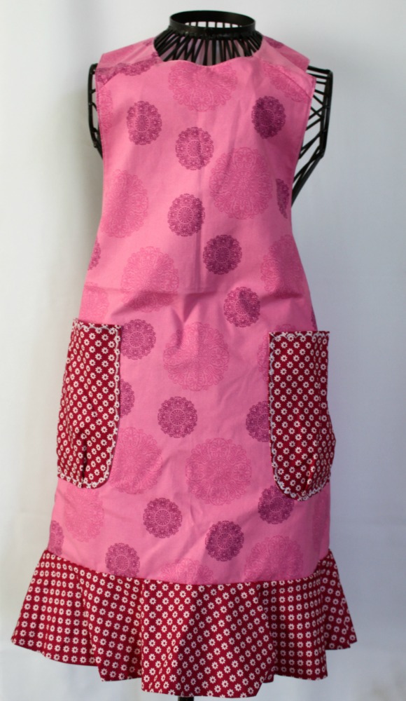 Just what every busy lady needs…a cute apron to wear while being brilliant in the kitchen! The full apron protects your clothes and has deep pockets to hold anything you need. Ties measure approximately 25 inches each. The perfect length for tying a cute bow! The front of the apron measures approximately 29 inches from the neckline to the base of the ruffle.